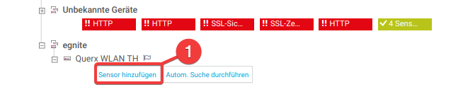 - Klicken Sie in der Geräteübersicht unter egnite/Querx WLAN TH auf Sensor hinzufügen.